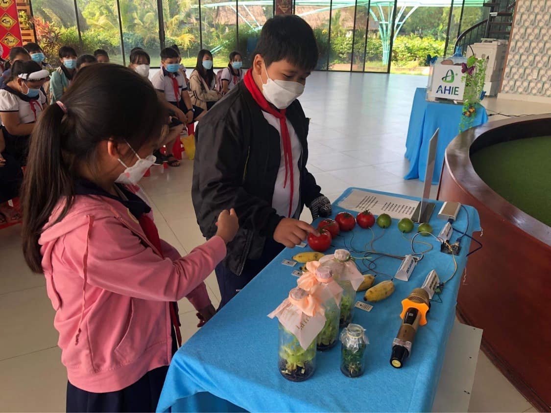 tham quan khu nông nghiệp công nghệ cao và bắt đầu di chuyển đến hội trường, ổn định chổ ngồi để xem phim tư liệu với màn hình LED hiện đại. Nghe thuyết minh trong hội trường về nông nghiệp công nghệ cao, sau đó các em tham gia chương trình đố vui, trò chơi có thưởng.